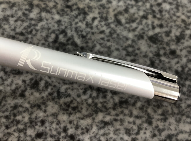 今回は「RSD-SUNMAX-FL30」と標準付属品の回転加工機を使用し、作成したボールペンの名入れ一例をご紹介いたします。