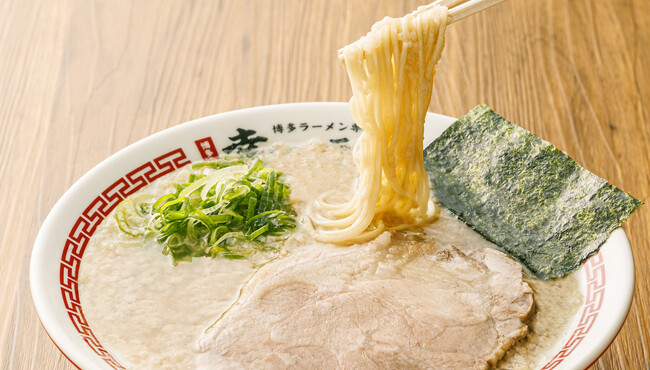『早い、美味い、また来たい』をコンセプトに、2020年開業。福岡県内に3店舗、博多本店、中洲店、西月隈店を展開しています。豚骨の旨味と、ほんのり感じる甘みがクセになるスープと、パツッとした細麺との相性は抜群で、思わず飲み干したくなるような一杯を提供しています。