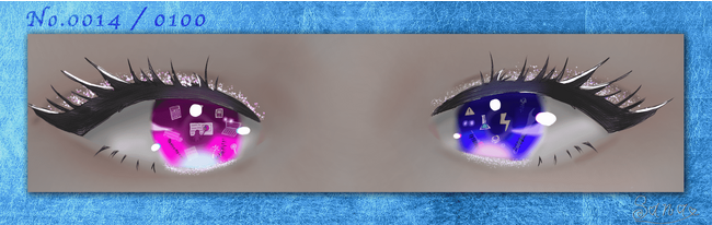NPOみらいてが支援している、神奈川県立商工高校と各科を象徴するアイテムをアイコン化して、両目の中に構成したデジタルアート作品です。高校生の多様なクリエイティビティを表現しています。