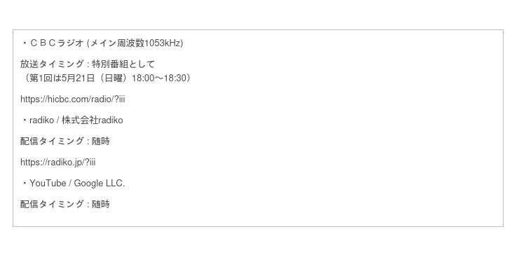 まずは「スタートアップ」×「放送コンテンツ」×「デジタル」の番組連携プロジェクトとして、2023年5月に愛知県が開設しSTATION Ai株式会社(所在地:愛知県名古屋市西区、代表取締役社長兼CEO:佐橋 宏隆)が運営する支援拠点「PRE-STATION Ai(WeWorkグローバルゲート名古屋内)」とコラボレーションし、公開収録イベントとして開催いたします。このイベントの模様を収録し、CBCラジオにて2023年5月21日(日曜)18:00〜から放送される予定です。
