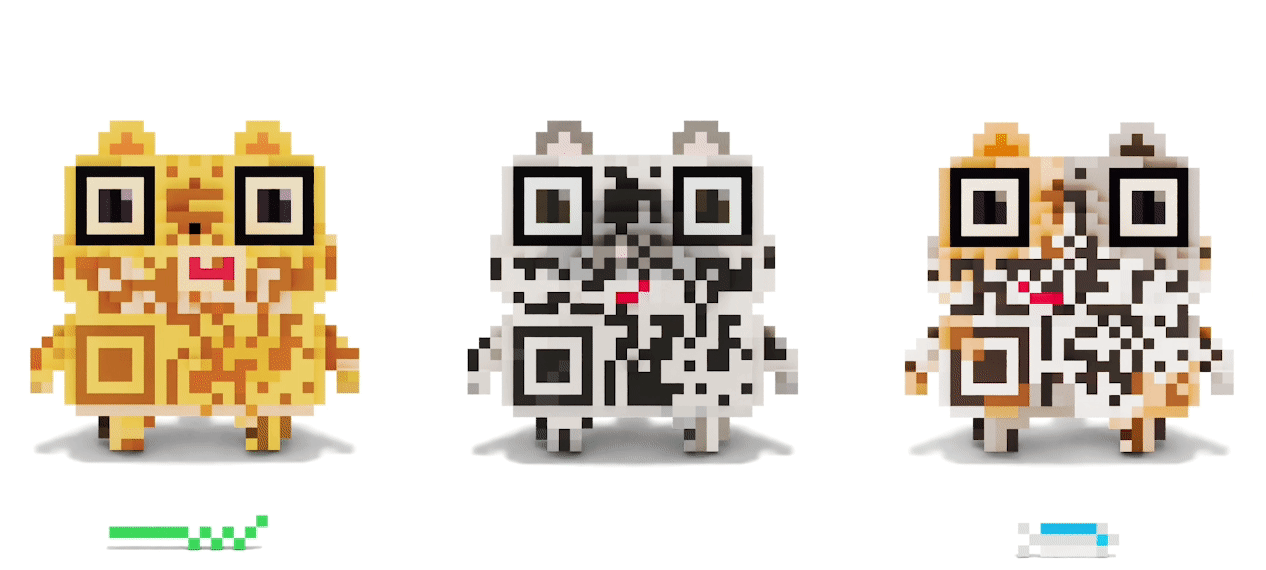 にゃんコードのキャラクターデザインは、ゲームなどで親しまれているピクセル、あるいはボクセル(立体のピクセル)表現をベースにしています。そのため、プリントメディア、オンスクリーン表現、メタバースなど幅広く対応しています。