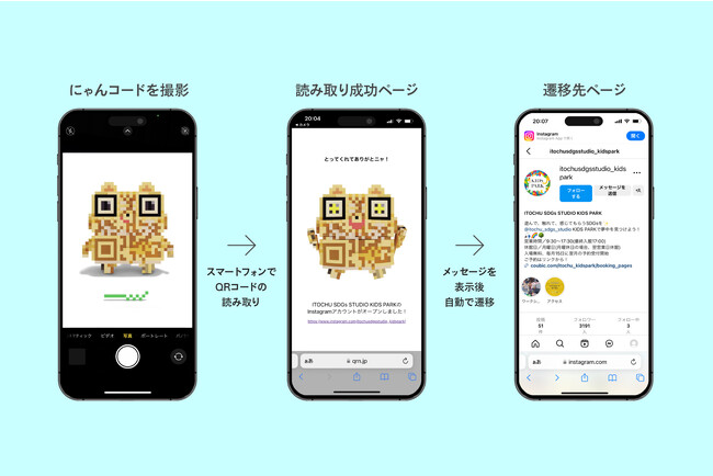 このシステムにより、URLを入力することでオリジナルのにゃんコードを作成し、ブランドに合ったカラーリング変更などカスタマイズすることができます。(なお、これらの技術は現在特許出願中です。)