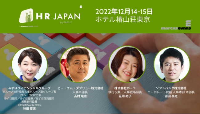 マーカス・エバンズ・イベント・ジャパン・リミテッド(本社:英国/代表:雪下 大輔、以下「マーカスエバンズ」)は、2022年12月14日(水)-15日(木)の2日間、人事部門統括責任者向けビジネスサミット『HR Japan Summit 2022』をホテル椿山荘東京にて開催いたします。