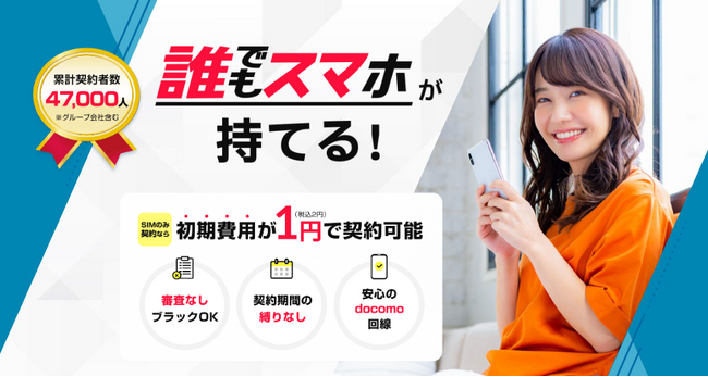 2023年1月16日よりサービスを開始した「誰でもスマホ」は、文字通り“誰でもスマートフォンの契約ができる”サービスです。過去に携帯電話を滞納し、所謂「ブラックリスト入り」してしまった方でも、必要な身分証さえあればご契約が可能です。