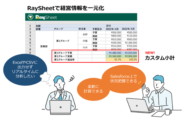 RaySheetがクラウド型SFA上の集計機能を強化。損益予算管理や予実管理など経営状況の一覧も自由自在