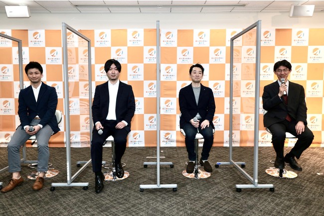 プロジェクトの記者発表会では、ビズリーチの取締役 HRMOS事業 事業部長である古野了大氏、弁護士ドットコムの取締役 クラウドサイン事業部長である橘大地氏、ラクスの取締役 クラウド事業本部長である本松慎一郎の3名と、中小企業庁の経営支援部経営支援課 課長補佐である小池明氏をゲストスピーカーに迎えた4名で、トークセッションを行いました。トークセッションでは、「企業における紙の業務と、それによって起こる働き方の問題」「紙に縛られない働き方を広げるために、これまで業務のデジタル化が難しかった企業でもできること」「『紙に縛られない働き方』を実現した先の将来像」の3つのテーマについて話し合いました。