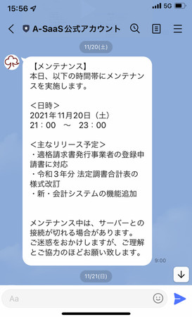 LINE公式アカウントの開設に先立ち、数ヶ月にわたり試験運用を行ってまいりました。「A-SaaS(エーサース)」をご利用中のお客様等を対象にLINE公式アカウントを通じた情報配信を複数回実施したところ、翌日までにメッセージをご覧いただけたお客様の割合が事前の想定を大きく上回る水準で推移し、このことからお客様へタイムリーに情報を届けられることが確認できました。