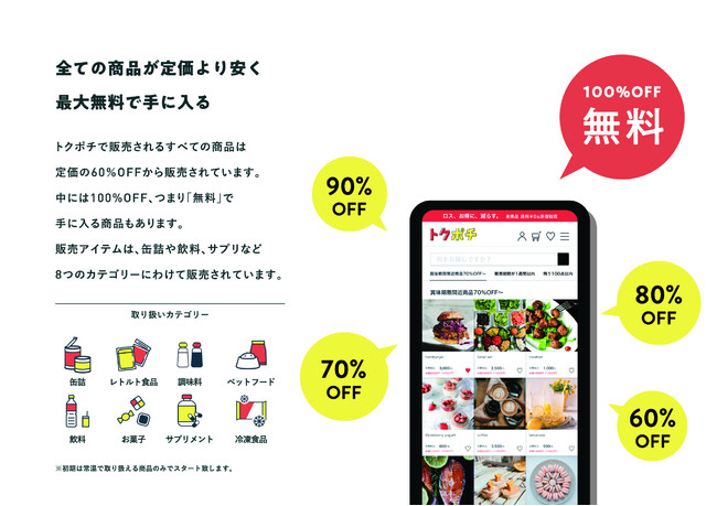 トクポチではこの「賞味期限が残っているのに廃棄されている商品」を扱うことで「低価格」や「最大0円」での販売を実現しています。