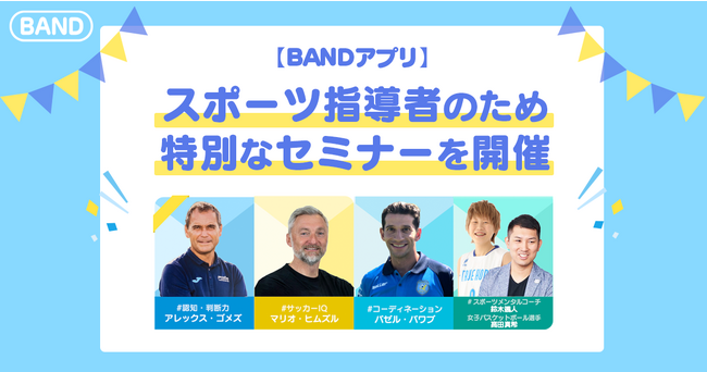 無料グループコミュニケションサービス「BAND」は、ドイツなどグローバルサッカーに専門家を招待し、スポーツ指導者のための無料オンラインセミナーを4週間にわたっておこなう「BAND for Sports キャンペーン」開催することをお知らせします。