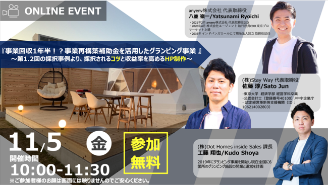 「事業回収1年半!?事業再構築補助金を活用したグランピング事業」〜第1回、第2回の採択事例より、採択されるコツをお伝えいたします~
