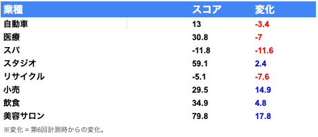 最も高かったのは美容サロンで、前回より18ポイント近く上回った結果となりました。