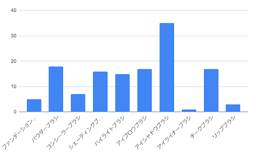 調査の結果、アイシャドウブラシが最も使用されていることがわかりました。