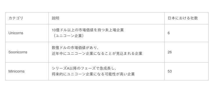 Soonicorn Clubは、インド・バンガロールに本拠地を持つスタートアップ専門分析企業「Tracxn」が、各国のVC・PE Fund・投資銀行と会話し、毎年発表しているリストであり、下記3つのカテゴリで発表しています。