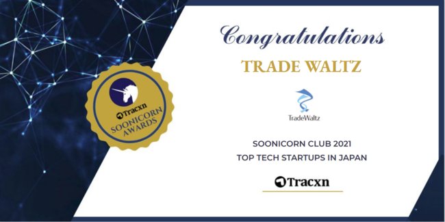 産官学ALL Japanで貿易DXを推進する 株式会社トレードワルツ(本社千代田区、以下:トレードワルツ)は、スタートアップ分析サービス「Tracxn」が毎年発表しているユニコーン候補企業リスト「Soonicorn Club」のMinicorn部門(日本では53社)に選出されました。 https://tracxn.com/d/soonicorn-awards/top-startups-in-japan-tech-2021