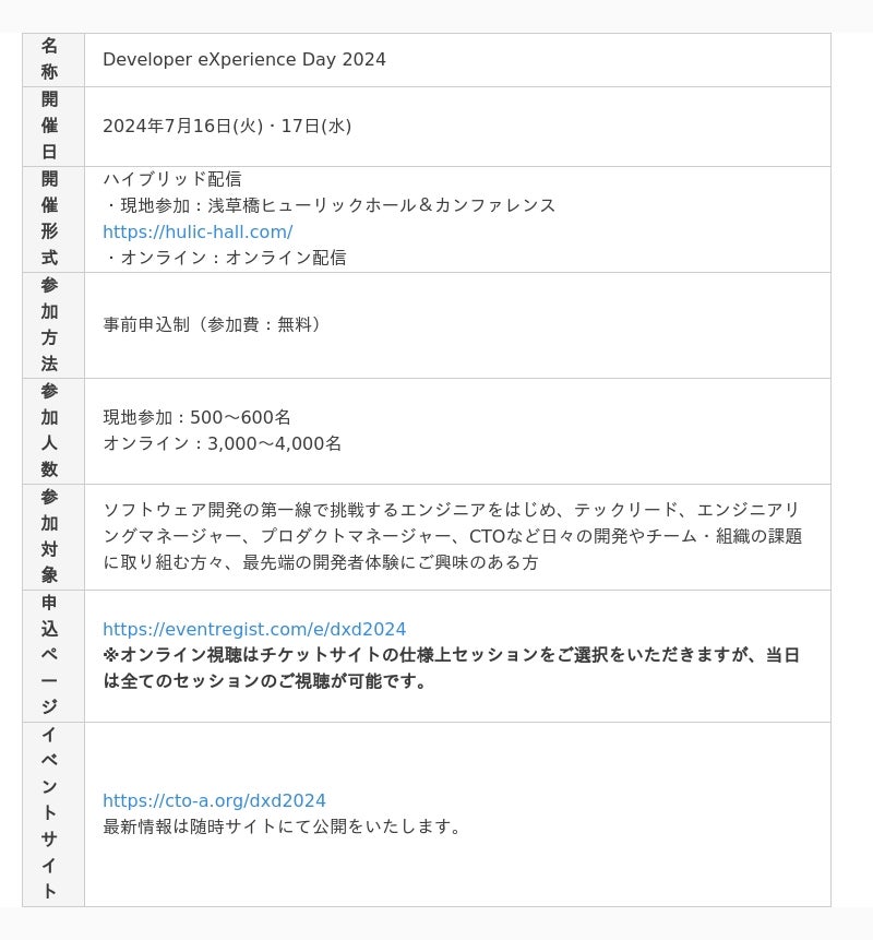 「Developer eXperience Day」は、その名の通り”開発者体験”をテーマに、