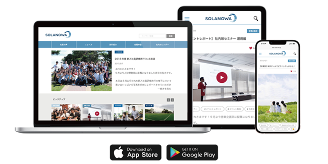 SOLANOWAは、国内・海外の70万ユーザーが利用するエンタープライズ市場シェアNo.1 ※ のWeb社内報アプリです。「社員が会社のファンになる」をコンセプトに、組織のエンゲージメントを高め、社内コミュニケーションの課題解決に役立つ豊富な機能を搭載しました。