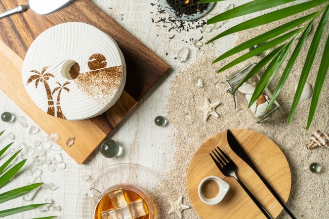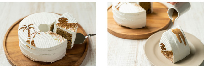 ヤシの木とサンセットをあしらったケーキで夏を楽しむデザートタイムを。