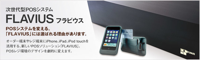 次世代型POSシステム「FLAVIUS(フラビウス)」はPOSレジ環境のデザインを劇的に変えます。オーダー端末やレジ端末にiPhone、iPadなどApple社の革新的なユーザーインターフェースを活用する新しいPOSソリューションと言えます。特徴として、1.スタイリッシュなデザイン、2.導入、運用コストを抑えられる、3.お客様のニーズに合わせた自在な仕様にできる、4.豊富な利用実績(2021年現在、導入実績3500ライセンス以上)などが挙げられます。