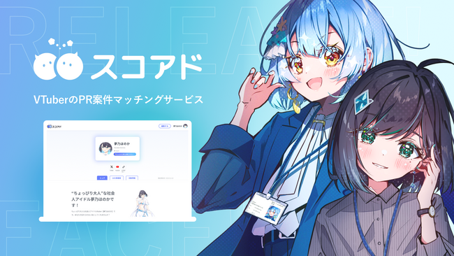 「ほしかったのは、私を活かせる案件」というビジョンのもと、VTuberと企業をつなげるPR案件のマッチング・広告代理事業を行っております。「スコアド」では、VTuber・企業・視聴者三方良しのPR案件を行い、誰もが幸せになれるPR案件の実現を目指します。