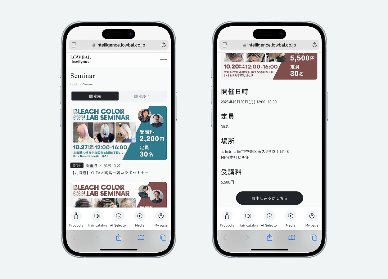 Seminar現在開催が決定している美容師様向けの技術セミナーの予定を一覧で確認でき、最新情報を逃すことなく把握することが可能です 。