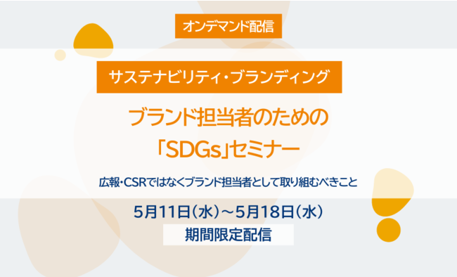 企業のブランド戦略を支援する株式会社フォワード(本社:東京都中央区、代表取締役:伊佐 陽介)は、無料セミナー「ブランド担当者のためのSDGsセミナー」のオンデマンド配信を実施致します。2022年5月11日(水)~18日(水)の期間限定配信となっております。
