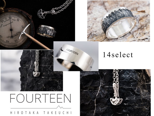 「FOURTEEN - HIROTAKA TAKEUCHI」からセカンドモデルとして、雄大なヒマラヤの山並みと、宇宙に続く空をモチーフにしたリング『HIMALAYA RIDGE (ヒマラヤリッジリング)』と、クライマーズスピリッツのシンボルでもあるカミングデバイスをモチーフにしたペンダント『MATE (メイト)』の2点を新たに発表。