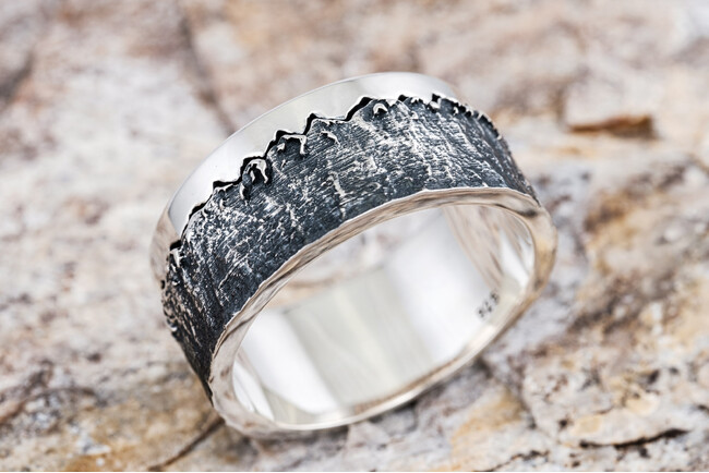 ユニセックス リング 『HIMALAYA RIDGE RING』は、8000m峰14座の山容の特徴をとらえ、雄大なヒマラヤの山並みと、宇宙に続く空を繊細なリングの中に表現。