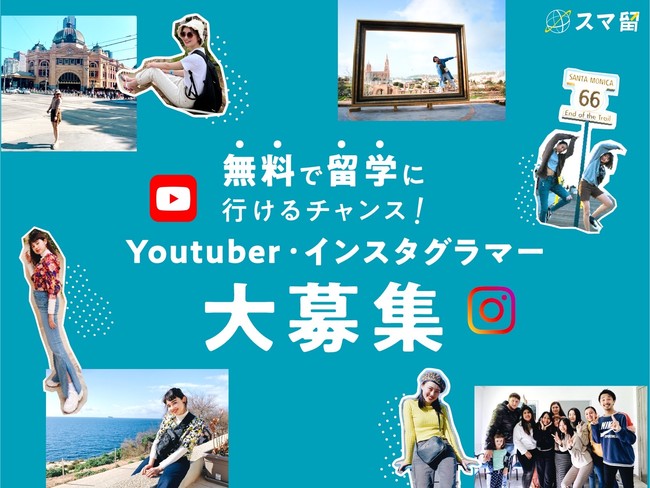 語学留学、海外留学エージェントの「スマ留」、無料で留学に行けるチャンス!Youtuber・インスタグラマーなど留学したいインフルエンサーを大募集!