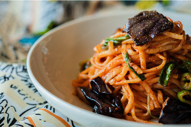不揃いなトマトをあえてセレクトし、美味しいトマトソースに仕上げたサステナブルなビーガンパスタ