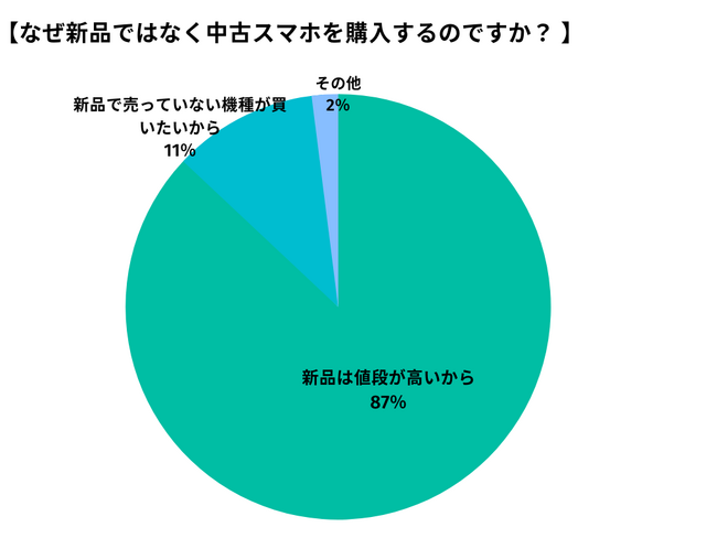 アンケートの結果を見ると、中古スマートフォンを選択する主な理由は、新品が高価であるためということがわかります。