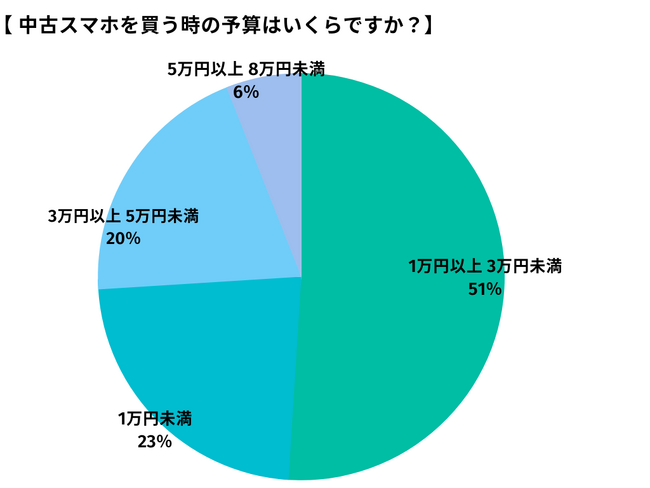 このアンケート結果から、中古スマートフォンを購入する際の消費者の予算範囲が明らかになります。