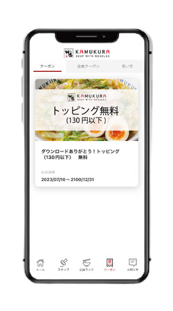 アプリをダウンロードしていただくと「ダウンロードありがとう!トッピング無料クーポン」をプレゼントしております。