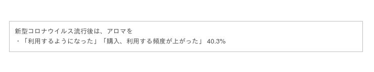 ・調査対象:日本全国 20〜59歳 男女400名(アロマ・香りに興味関心を持つ方が対象)