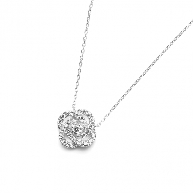 ダイヤモンドの輝きを、さり気ないサイズ感にギュッとつめこんだ贅沢なネックレス。ダイヤモンドのセッティングにこだわり表現された立体的なモチーフが、確かな存在感を放ちます。