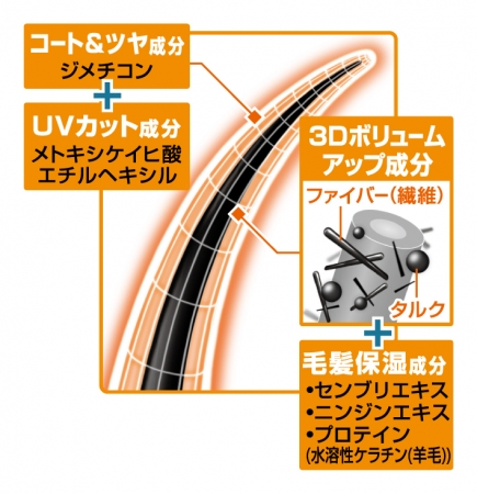 特殊技術により開発された増毛ファイバー(繊維)を新配合。3Dファイバー&ミクロの微粉末のW効果で髪がボリュームアップ!