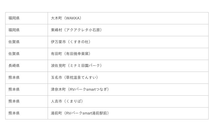 ※RVパークは、日本RV協会が『快適に安心して車中泊が出来る場所』として公認している車中泊施設で全国で200箇所以上普及しております。九州周遊観光活性化コンソーシアムは、キャッシュレス精算・無人運用が可能な「RVパークsmart」を自治体等に提案しています。