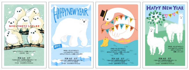 「十二支じゃなくてもいいんじゃない?」という発想から、年賀状に登場する機会のない「白いもふもふ」をピックアップし、年賀作家がデザインしました。ほかにはないユニークで癒される年賀状を送りたい!という方へおすすめです。