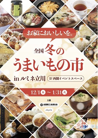”お家においしいを。”をテーマに『全国冬のうまいもの市』をルミネ立川 1階(西側イベントスペース)にて開催しております。全国から選りすぐりの地域特産品が約140品集結しており、小売初販売商品や普段はオンラインでしか購入できない商品も多数登場しております。