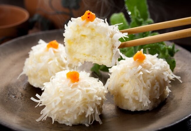料理人の直伝レシピを使用。ふわふわしたすり身の中にコリコリとしたイカの食感を楽しめます。 ひらひらと華のように飾られた皮が見た目にも美しく、食欲をそそるいかしゅうまいです。 博水こだわりのすり身と玉ねぎ、イカの切り身をふんだんに混ぜ合わせ、しゅうまい1つ1つを手作りで作っています。 練り上がった身に、玉ねぎといかの切り身をふんだんに混ぜ合わせ、機械でしゅうまいサイズに出していきます。しゅうまいサイズの身に、社員がひとつひとつ、刻み皮をまぶしてトレーに並べていきます。 トレーに並べられたいかしゅうまいは、100℃近くの温度で蒸し上げられ、急速冷凍されます。