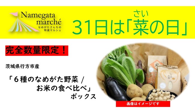 茨城県行方市の特産品をお届けするECサイト『なめがたさんちの特選マルシェ』では、夏の暑さにも負けない健康な体づくりをサポートするために『6種のなめがた野菜/お米の食べ比べ』ボックスの特別販売を行います。80品目もの野菜が育つ野菜王国の『新鮮な野菜』と、水郷地域で作られた『行方産のお米』は絶品です。