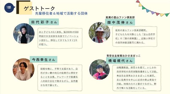 プログラム第1部には、先輩移住者2名と、地域で活動する2団体をゲストにお迎えします。先輩移住者から「生の声」を是非聞いてみませんか?