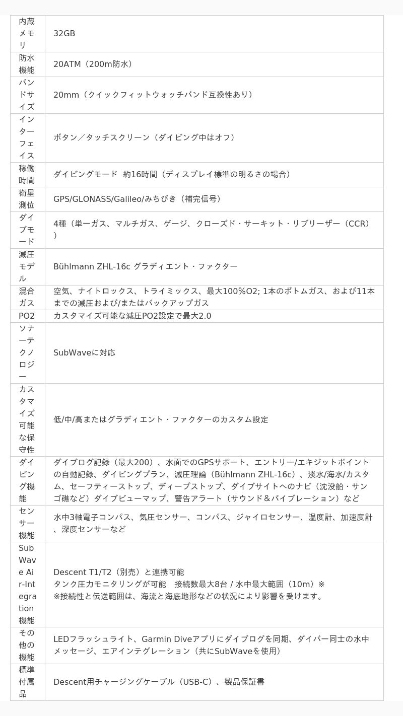 最大200本のダイビングログを保存・レビュー可能。また、Garmin Diveアプリを使用してログ共有・レビュー可能です。