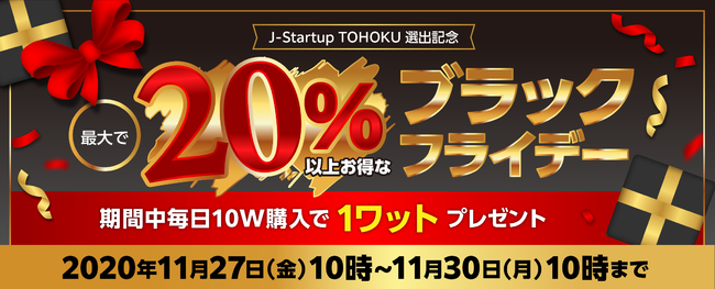 【J-StartupTOHOKU選出記念 最大で20%お得なブラックフライデーキャンペーン】