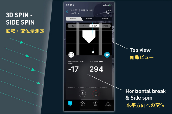 ・ ボール軌道、球速、回転軸、回転数などを分析し、野球を科学的で楽しむ!
