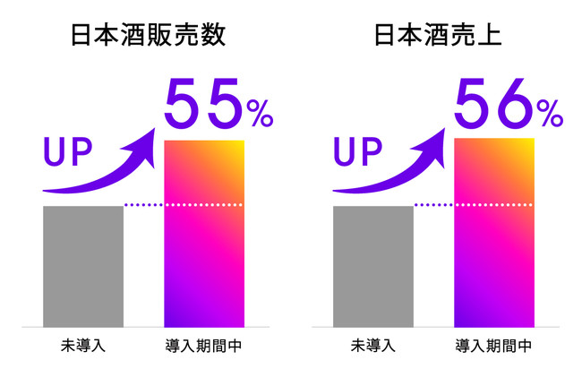 実証実験結果:日本酒売上が 56%UP!また、日本酒だけではなくペアリング効果によるフード売上も39%UP!