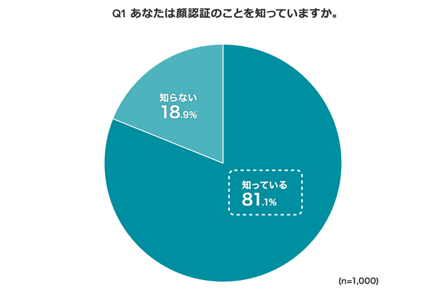 顔認証のことを知っているか聞いたところ、認知率(81.1%)は8割と高い結果でした。