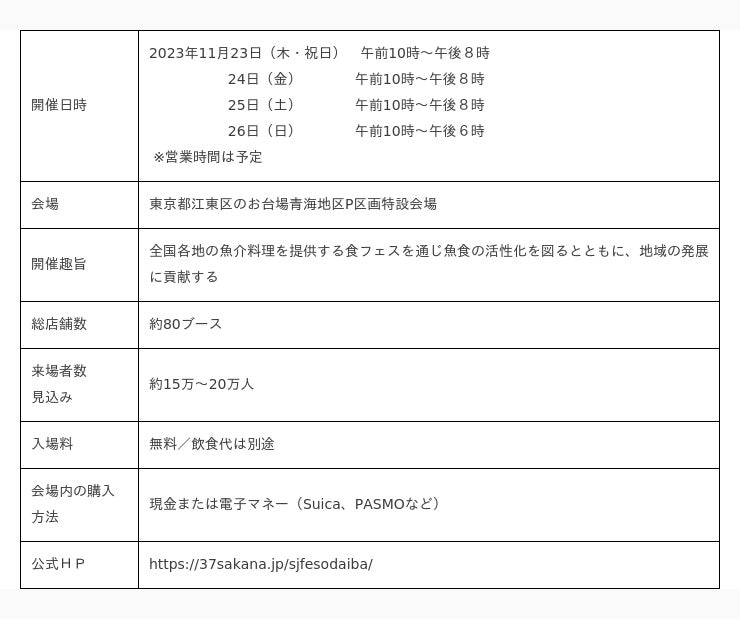 公式ホームページ(https://37sakana.jp/sjfesodaiba/)