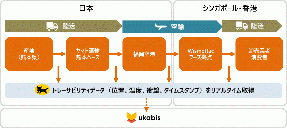 Wismettacフーズ株式会社(本社:東京都中央区、代表取締役社長:辻川弘、以下「Wismettacフーズ」)とヤマト運輸株式会社(本社:東京都中央区、代表取締役社長:長尾裕、以下「ヤマト運輸」)は、戦略的イノベーション創造プログラム(SIP)において、国内外で流通する荷物の位置情報や温度推移などの輸送関連情報をリアルタイムに可視化する「トレーサビリティプラットフォーム」を活用した、農産品を輸出する実証実験を実施しました。