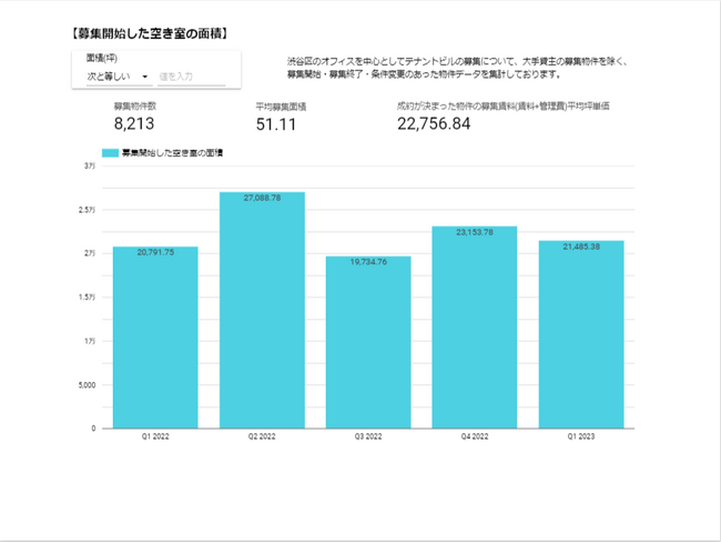 2023年第1四半期の成約面積は、36,379坪と前第1四半期を大きく下回る状況で、小規模の区画の成約が比較的多かったことが影響していると思われます。