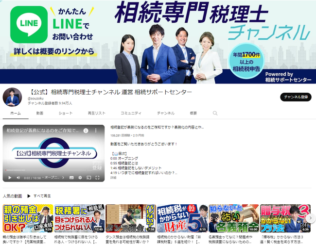 チャンネル名:【公式】相続専門税理士チャンネル 運営 相続サポートセンター